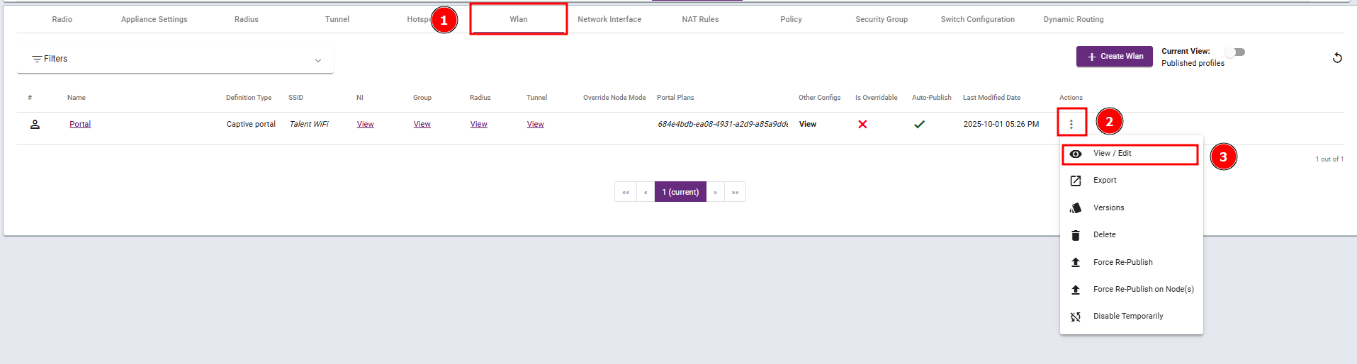 Steps 1: Navigate to the WLAN profile and select View / Edit.