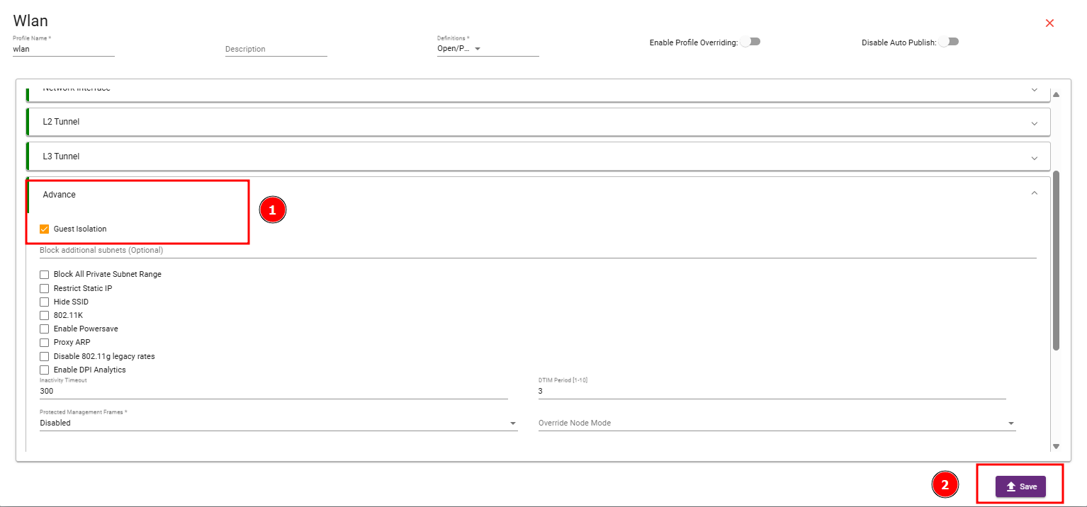 Step 2: Navigate to the Advance Section, enable the Guest Isolation checkbox, and then save your changes.