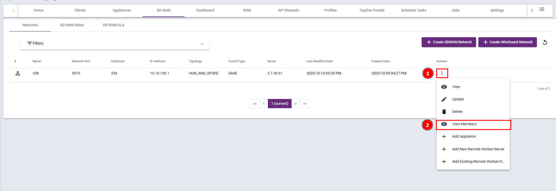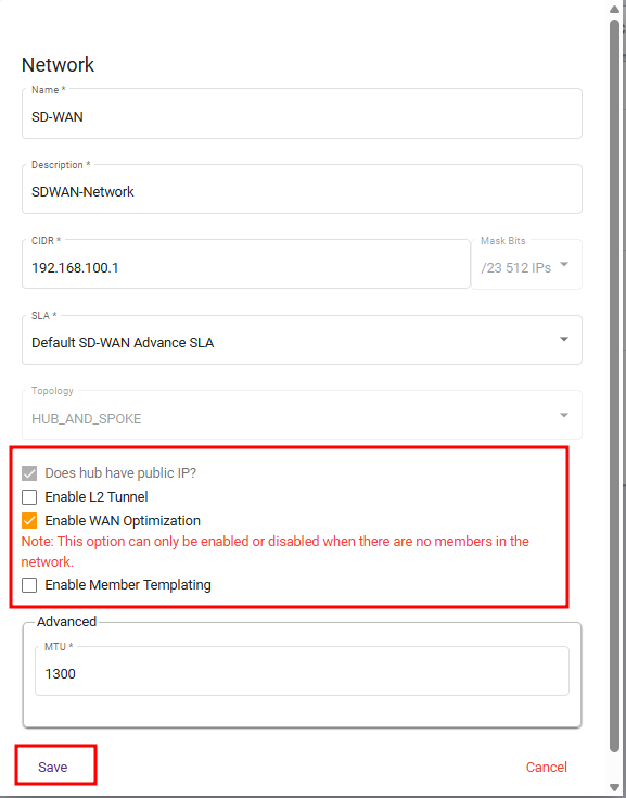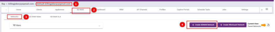 Steps 1: Go to the Parent Cluster, navigate to SD-WAN, select Network, and click Create an SD-WAN Network.