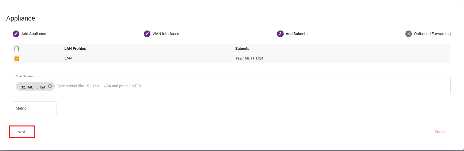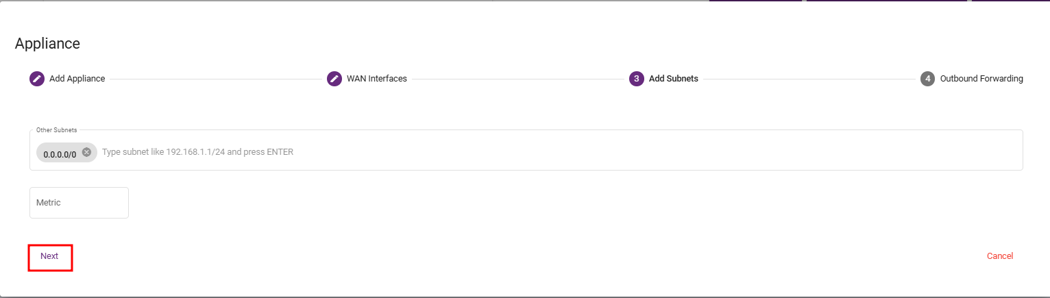 Steps 7: In this step, Go to other subnet put this 0.0.0.0/0 as the local Lan Subnet. This represent all IP address and ensures that all internet-bound traffuc from the branch is routed the central hub by using 0.0.0.0/0.