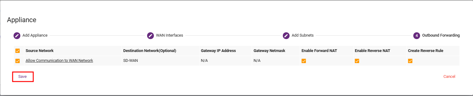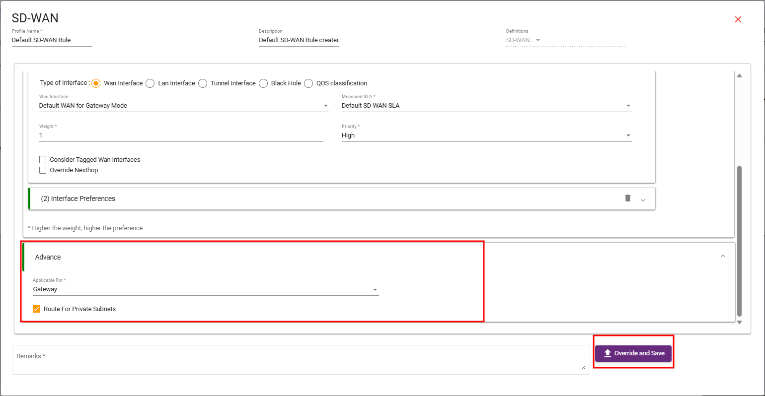 Now, go to the HUB site (Child cluster).- Followed Step:Navigate to the SD-WAN section, select SD-WAN Rules, then click Create SD- WAN and Save.