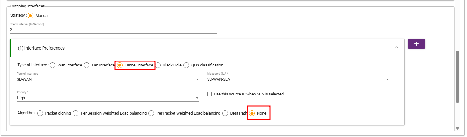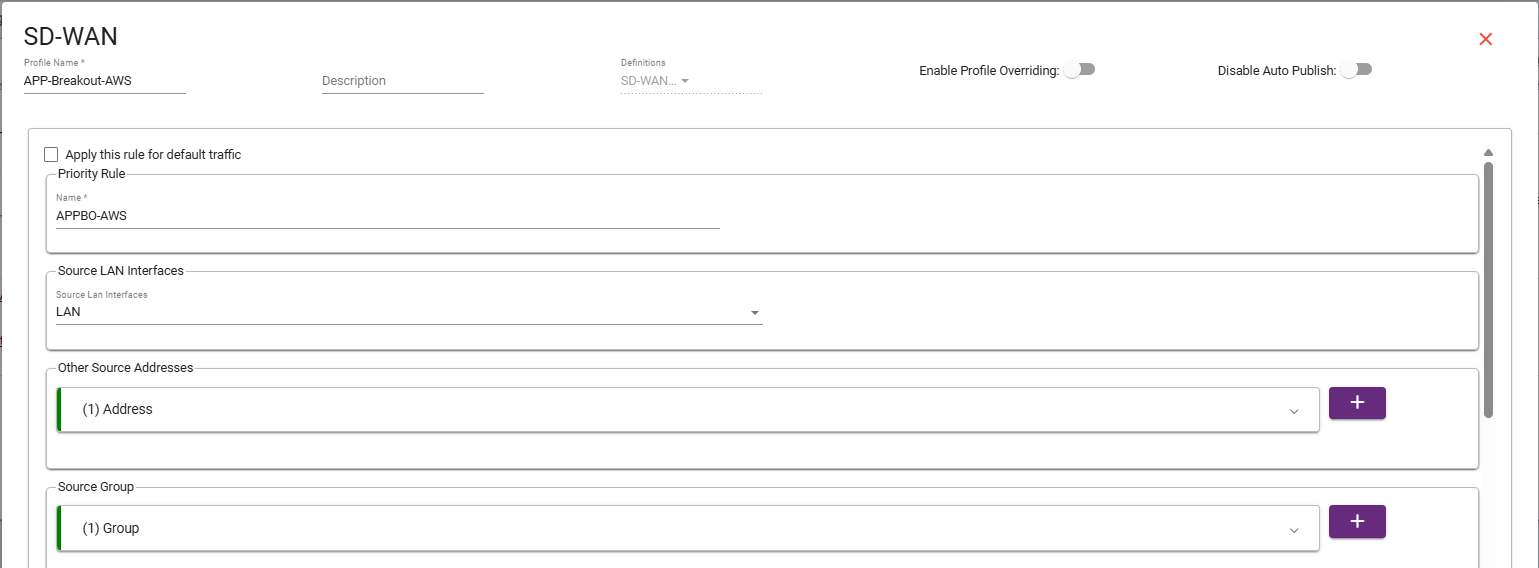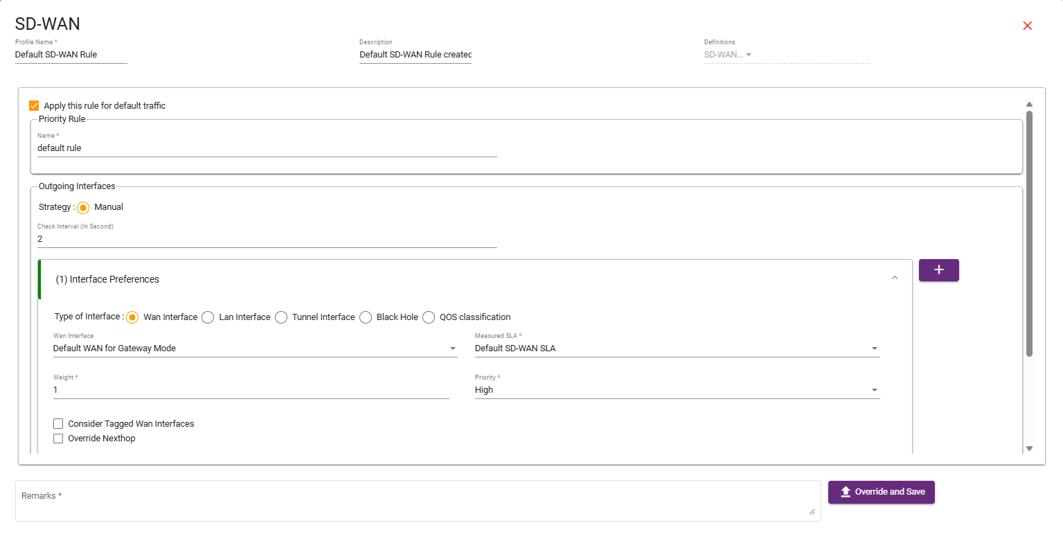 SLA: Choose the default SD-WAN SLA profile.