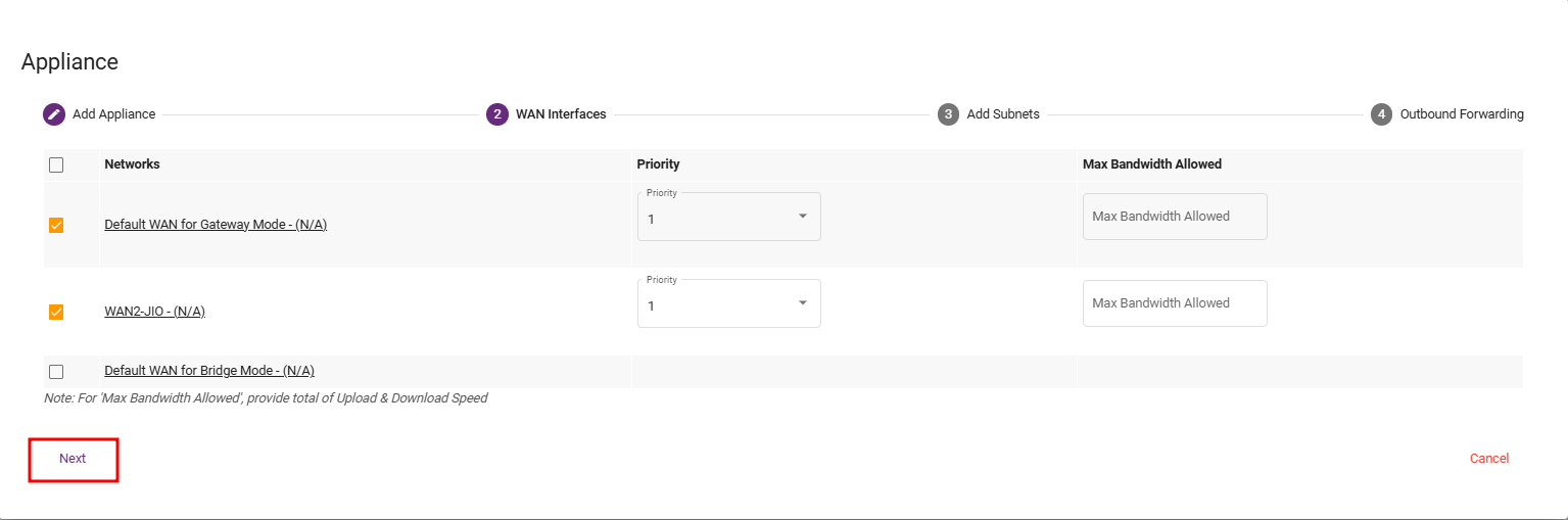 Steps 10: Select all WAN links that you want to include in the Session-Based Weighted Load Balancing algorithm. This ensures that traffic sessions are distributed across the selected links according to their assigned weights, optimizing bandwidth utilization and improving overall network performance.