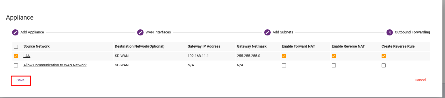 Steps 8: In this step, choose whether the incoming traffic from the tunnel should be forwarded to the LAN side or the WAN side. After making your selection, click Save.
