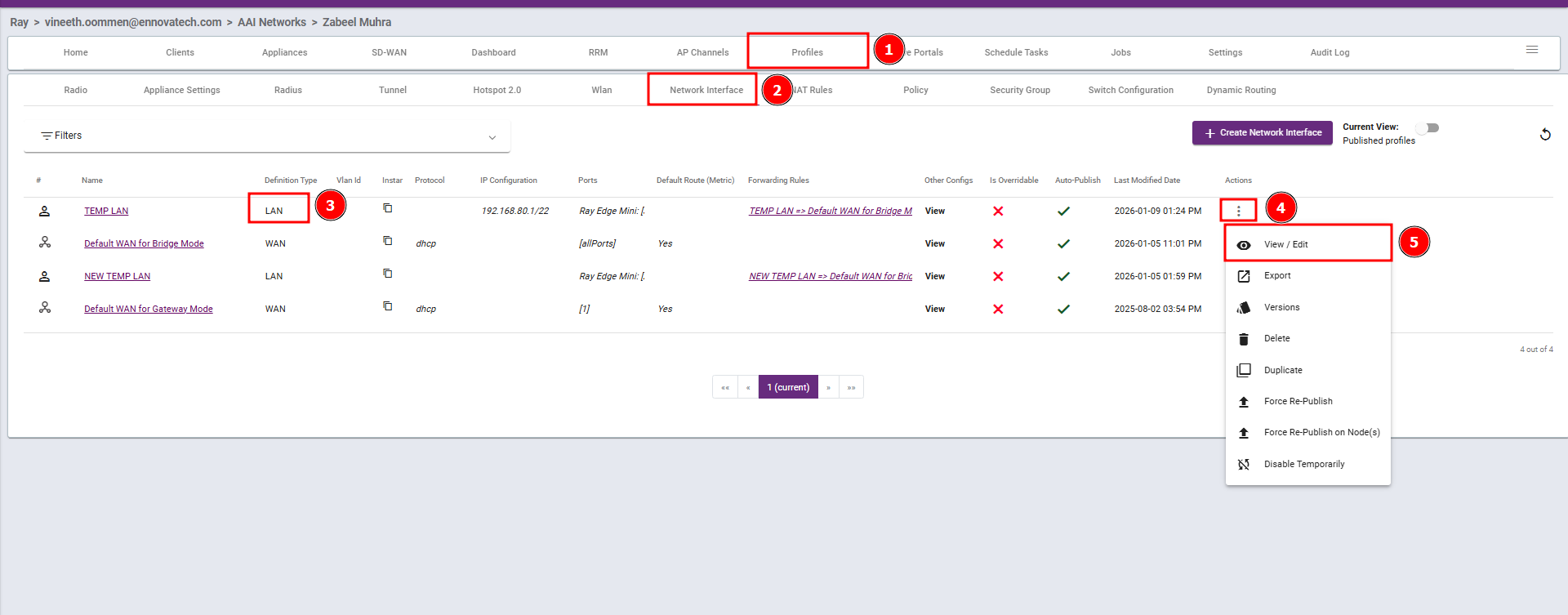Steps 1: Navigate to the profiles, select Network Interface, choose the LAN profile, and click View / Edit.
